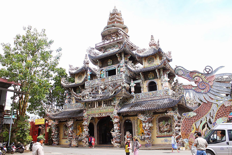 Chùa Ve Chai: Nằm ở trạm cuối của tuyến xe lửa ga Đà Lạt, chùa Ve Chai gây ấn tượng bởi kiến trúc và các bức phù điêu khảm sành vô cùng tinh xảo. Đặc biệt, ngôi chùa có tháp chuông cao 37 m cao nhất Việt Nam, Đại Hồng Chung 8 tấn rưỡi nặng nhất Việt Nam và tượng Bồ Tát Quán Thế Âm được kết từ 700.000 đóa hoa bất tử.
