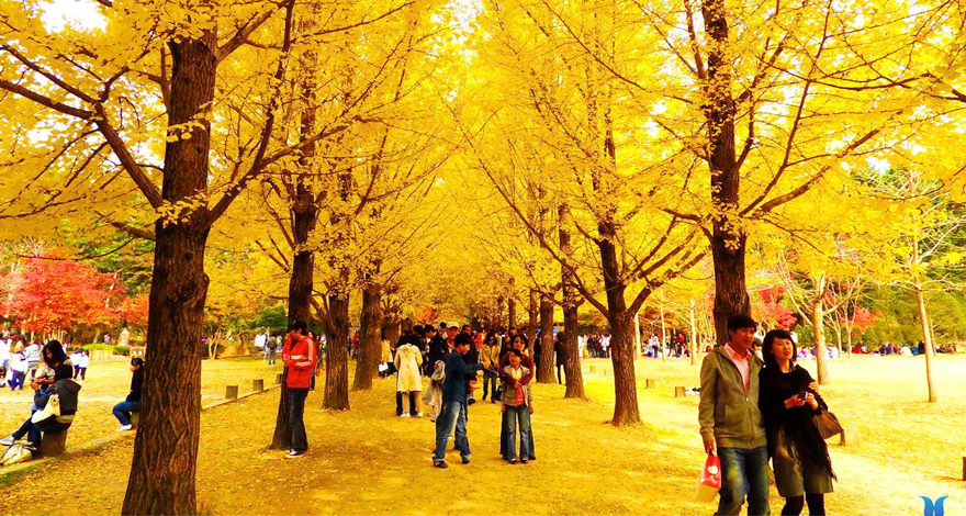 * Đảo Nami - nổi tiếng với những tán lá phông đỏ rực một góc trời cùng hàng ngân hạnh vàng rực, thẳng tắp đã từng xuất hiện trong bộ phim Bản Tình Ca Mùa Đông.
